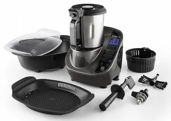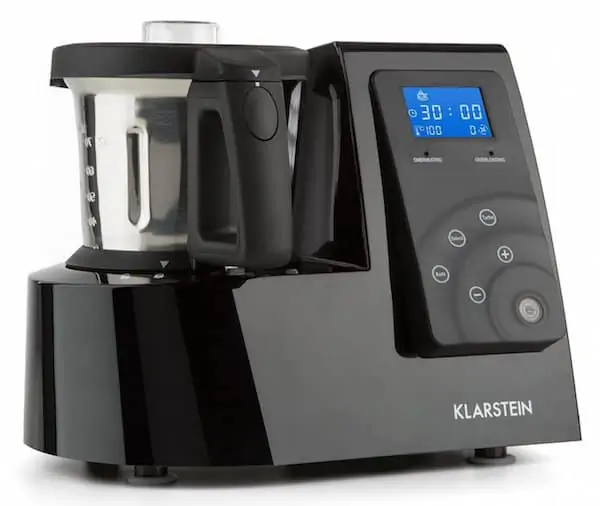 Que peut-on dire de ce modèle Klarstein Kitchen Hero ? La capacité du récipient est de 2 L. L’appareil est équipé d’un moteur de 500 W et d’une puissance de cuisson de 1300 W. Son panneau de commandes dispose d’un écran LCD et de boutons de commandes.