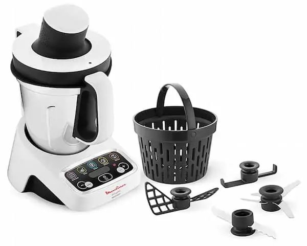 Pourquoi l’acheter ? C’est un robot cuiseur qui mélange les aliments, les broie et les chauffe. Les soupes sont onctueuses, les sauces savoureuses ou fluides. Vous pouvez l’utiliser pour préparer une pâte à tartes, une mousse au chocolat ou une meringue. Vous pouvez réaliser une ratatouille et cuire à la vapeur du poisson en simultanée grâce au panier vapeur. C’est pratique et simple.