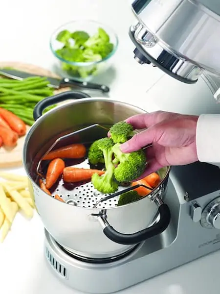 Le robot cuiseur est une aide quotidienne. Vous ne vous fatiguez plus en fouettant des préparations ou en pétrissant des pâtes à la main. Il le fait à votre place. Vous gagnez en énergie, vous gagnez du temps aussi. Comment ? Grâce à des cuissons en simultanée. Placez vos légumes dans la cuve, ajoutez un panier vapeur comprenant du poisson sur le dessus et lancez la cuisson.